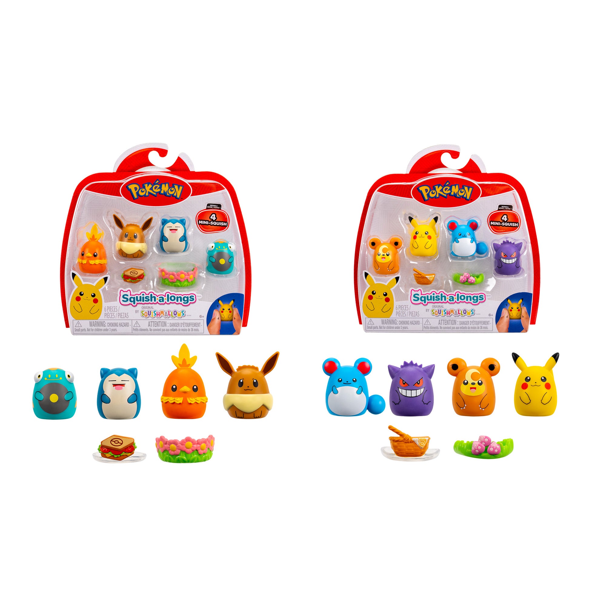 Porta a casa il divertimento con il pack Squish-a-Longs Pokémon da 4 personaggi! Morbidi, colorati e pieni di dettagli e accessori, questi Squish-a-Longs sono perfetti per giocare, collezionare o esporre. Ideale per bambini e fan Pokémon, questo set è compatibile con tutta la linea Squish-a-Longs Pokémon. Ottimo anche come idea regalo.